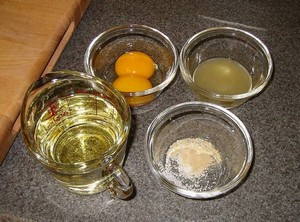 Взбейте все продукты, кроме лимонного сока и растительного масла.